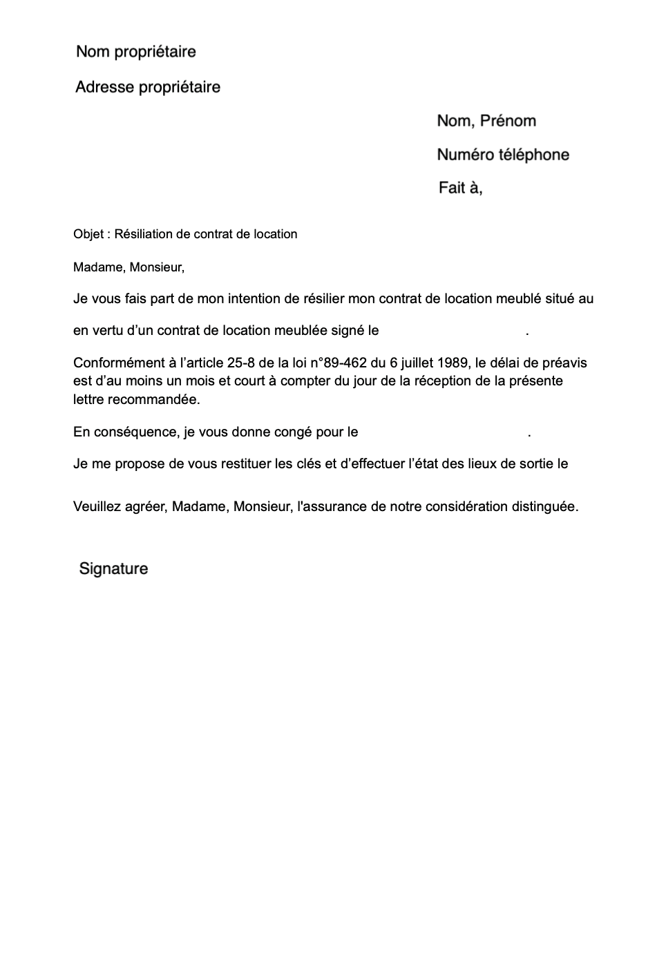 Créez et téléchargez gratuitement votre modèle de résiliation de votre contrat de location complet et gratuit.